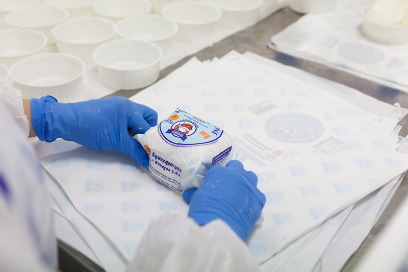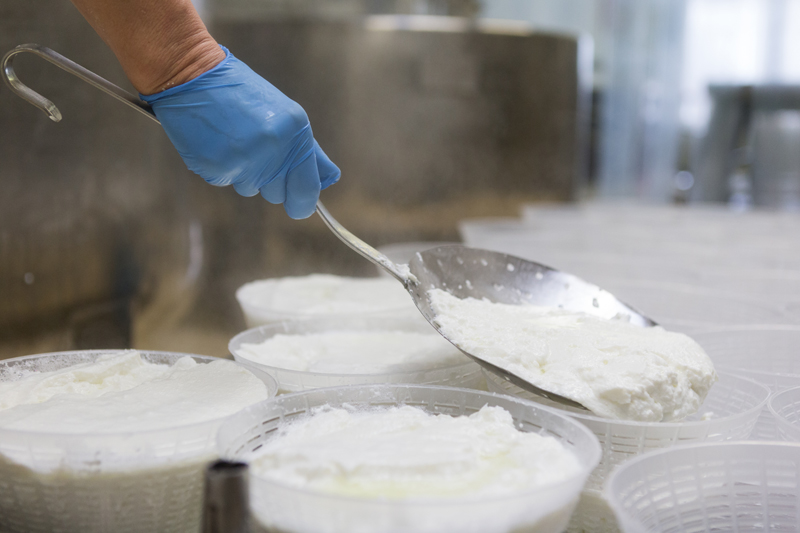 Andando oltre, arriviamo alla ricotta, un altro dei tanti fiori all’occhiello dell’azienda: questo prodotto nasce utilizzando l’acqua termale delle Fonti della Fratta dell’Appennino Tosco-Romagnolo. Si tratta di un’acqua ricca di sali minerali la cui concentrazione dona al prodotto un sapore particolare, pieno e armonioso. Inoltre, l’utilizzo di acqua termale consente di evitare l’uso di qualsiasi altro tipo di sale. In questa linea troviamo la Ricotta di Romagna (di solo siero), la Ricotta mista, quella di Pecora (un prodotto questo appena arrivato sul mercato) e il Fiocco di Latte (una ricotta da latte intero).