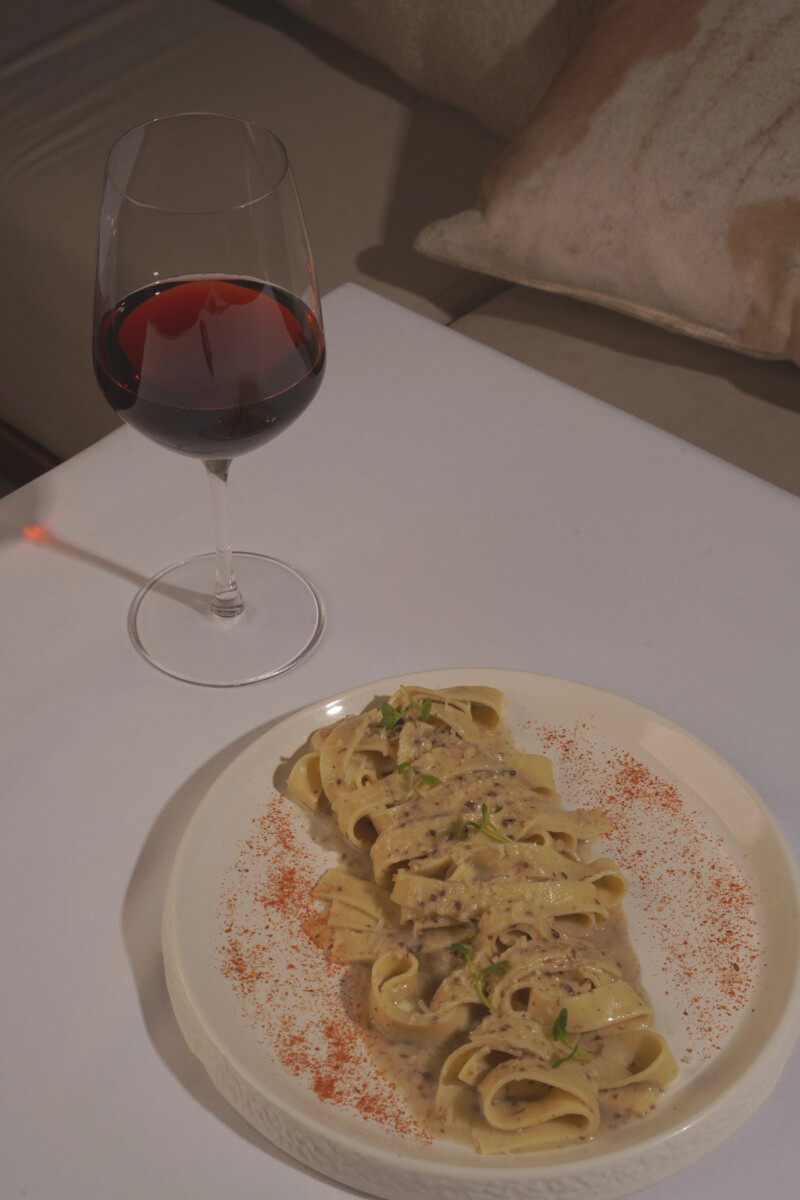 Oltre alle specialità romagnole, come cappelletti, appunto, e gnocco fritto, è possibile trovare sul menù i piatti più amati di tutto il Bel Paese, dal risotto alla milanese a supplì e arancini, passando per polenta, plin e carbonara. Il piatto preferito dagli abitanti di Nuova Delhi però sono le tagliatelle “Mi piaci”: pasta fatta in casa con tartufo, mantecata direttamente all’interno della forma di parmigiano. «La parte scenica e esperienziale della cena è uno dei punti forti del nostro locale — continua Lanzoni — come la spinning pizza, o il tiramisù assemblato al momento. Non è solo un viaggio nei sapori italiani, ma un’esperienza culinaria da vivere in prima persona».