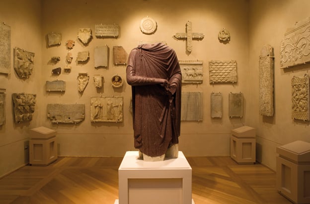 Nel Museo Arcivescovile è custodita una splendida statua di porfido. L’uomo raffigurato è stato riconosciuto come un imperatore: egli veste una clamide fermata sulla spalla destra da una fibula gemmata dalla quale scendono pendenti, sul fianco si intravvede una spada chiusa nel fodero. Purtroppo la statua è mutila della testa, dei piedi e della mano sinistra e, fino al 1869, lo era anche della mano destra che, con un vero e proprio colpo di fortuna, fu rinvenuta in quell’anno nel fiume Santerno.
