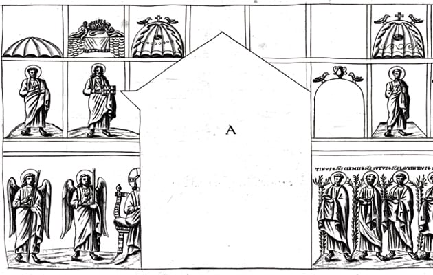 Nel secondo volume di Vetera Monimenta, edito nel 1699, Giovanni Ciampini restituisce esclusivamente l’immagine dell’ultima cena, la prima del ciclo cristologico di destra, e ancora nel 1838 Ignazio Sarti lamentava che solo questo pannello era visibile. Si dovrà aspettare Liborio Salandri giunto a Ravenna nel 1844 – città̀ nella quale peraltro morì̀ due anni dopo cadendo da un’impalcatura nella Basilica stessa – per ammirare le scene cristologiche nella loro interezza.