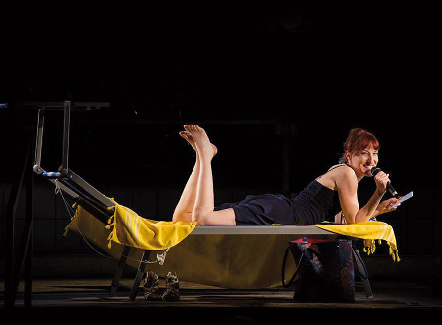 Infine la scena, perfetta nella sua essenzialità, con i due totem della romagnolità balneare: il lettino e la torretta del bagnino – manca il moscone, ma lo perdoniamo ai Menoventi, che sono faentini. Studiata e mai sopra le righe la Battiston, che regala il sorriso durante la serie completa e perfettamente eseguita di tutti i divincolamenti quasi spastici a cui i bagnanti sono costretti durante il rito della crema solare.