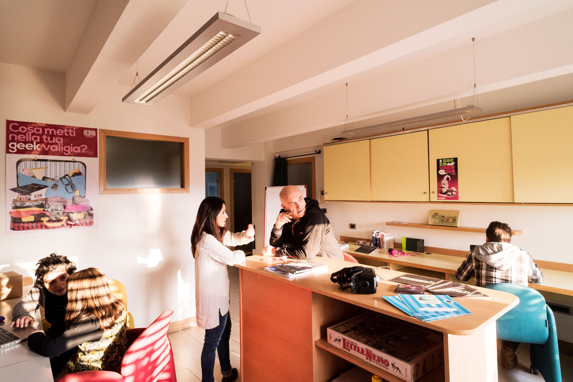 Il primo spazio nasce dal desiderio di sperimentare un coworking creativo e dalla disponibilità di uffici liberi all’interno di un studio tecnico già esistente; da questi due diversi presupposti – ci racconta Panebarco – è nata la domanda: «perché non uniamo le forze e non proviamo a fare qualcosa di nuovo in questi spazi per promuoverli e popolarli?». Diverso è il caso di coLaBoRa, nato da un progetto dell’Assessorato comunale alle Attività Produttive, in collaborazione con la “Fondazione Enrico Mattei”, per sviluppare un incubatore di start-up, oltre a spazi di lavoro condivisi; «insediare un luogo dove si crea innovazione è stata un’idea lungimirante», specifica Lazzari che sottolinea come, anche a Ravenna, «l’innovazione e la creatività possono contaminare anche imprese produttive più classiche e ricevere da esse supporto ed energia».