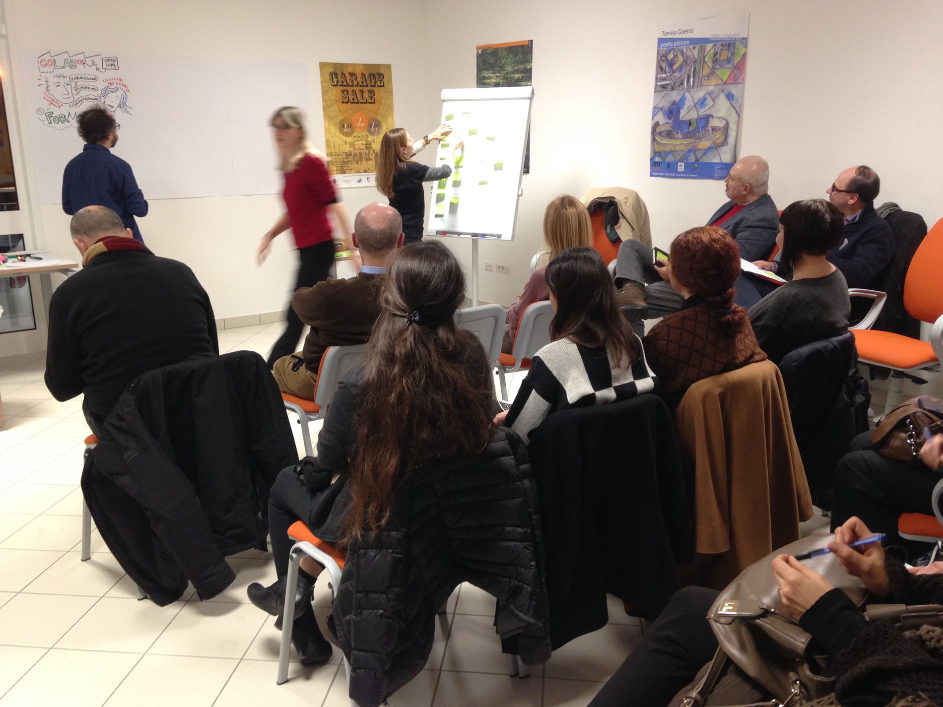 Gestire spazi condivisi ha delle difficoltà, specie in un’area che sta ancora ricercando una sua vocazione urbana. Le lezioni organizzate da Raffineria 42, ad esempio, sono andate spesso in overbooking «nel senso che creavamo per ogni evento la lista d’attesa, ma poi pochi posti si liberavamo e quindi non riuscivamo a soddisfare tutti quelli in lista d’attesa»; tuttavia «quasi nessuno ha fatto il salto dal partecipare alle lezioni gratuite al diventare membro attivo della community, occupando una scrivania o un ufficio liberi (a fronte di un canone mensile)». È la stessa Panebarco ad individuare tre delle principali cause. L’impegno da dedicare ad ogni attività, specie nella fase di avvio, dovrebbe essere costante e annullerebbe ogni altro impegno lavorativo; inoltre ogni settore necessita di spazi «adeguati al target». È per tale motivo che gli spazi di via Zara sono stati modificati per adattarsi ad uno specifico obiettivo; essendo all’interno di un ufficio attivo nel settore immobiliare, Raffineria 42 è spontaneamente diventato luogo condiviso per free-lance geometri e ingegneri, occupato anche da «un avvocato e da una cooperativa che si occupa di servizi educativi». Infine, uno dei limiti del coworking è la stessa dimensione della città, nella quale sono nati almeno 6 spazi simili in contemporanea, «quando ancora il coworking per i ravennati era un concetto da metabolizzare». In termini di relazioni, interne ed esterne agli spazi di Raffineria 42, il ciclo di incontri sta dando buoni frutti. Per coLaBoRa, la sfida è quella di trovare la propria vocazione guardando alla Darsena che «ha un’identità che si sta pian piano costruendo e inizia ora ad essere percepita dalla cittadinanza come luogo di aggregazione e sviluppo e non più come luogo di degrado ed abbandono». La sua mission è quella di spazio dove «portare e ricevere competenze, dove confrontarsi per sviluppare idee a beneficio personale e della città» essendo – ricorda Lazzari – uno spazio pubblico; tuttavia bisogna costantemente adattarsi, «leggere le modifiche della Darsena e cercare di essere in sintonia con essa». Anche per coLaBoRa il bilancio, in termini di networking, è positivo: «dopo una prima e naturale fase di studio e diffidenza, oggi i ragazzi lavorano in gruppo, mettono in circolo le competenze reciproche, si contaminano a beneficio di tutti. In poche parole creano innovazione stabile e non effimera legata solo alla creatività».