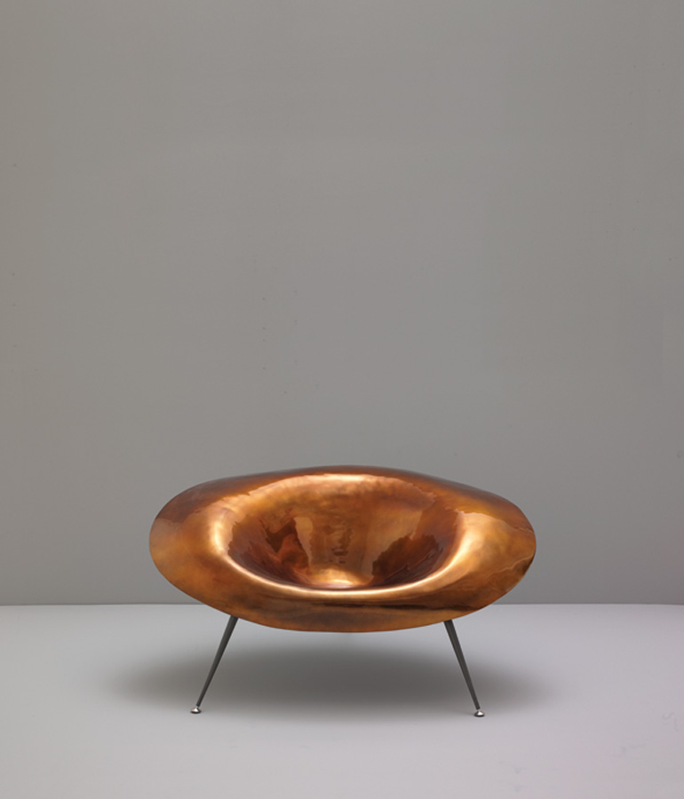 Con Malerba erano a Parigi anche altri progettisti della nostra area, evidentemente molto creativa, con pezzi affini come nucleo poetico e concettuale ai temi individuati come fil rouge della manifestazione. Il primo, l’ImperfettoLab di Longiano, è lo studio nel quale nascono, grazie alla coppia di artisti designer Verter Turroni ed Emanuela Ravelli, arredi/opere d’arte di sapore pauperista realizzati in vetroresina, rifiniti a mano e collocabili in una dimensione liminale tra l’opera d’arte e il design: più “artistici” di un multiplo d’artista e nello stesso tempo più funzionali perché “ abitabili” all’interno di una casa. La seduta Bioma, la libreria modulare Favo, la panca Olmo, presentati a M&O17 sono soltanto alcuni dei loro progetti, tutti molto affascinanti e in linea con la bellezza semplice e disarmante della natura.