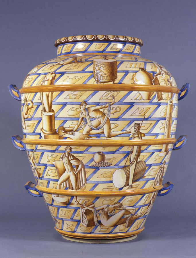 Per più di una decina di anni questo sodalizio produce porcellane e maioliche di chiara ispirazione classica in linea con l’interesse verso il dialogo con la classicità già evidenziato in architettura: anche in queste progettazioni si tratta di intrecciare il modello con il contemporaneo, dagli esiti coloratissimi e giocosi del secondo Futurismo di Depero alle sperimentazioni linguistiche delle Avanguardie europee, senza dimenticare né l’intensità evocativa della Metafisica italiana, né lo sviluppo del Déco occidentale, che diventa il metro comune su cui misurare la propria attendibilità moderna.
