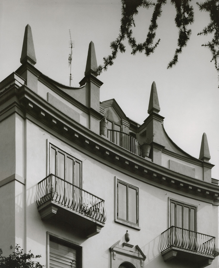 Se oggi a molti i suoi oggetti piacciono ciò è dovuto al mix di novità e tradizione, eleganza e ironia, decorazione e rigore progettuale del lavoro. Si tratta di caratteristiche che si possono osservare anche nella progettazione architettonica delle abitazioni milanesi di Ponti e dell’amico Lancia, così come nell’ufficio che i due architetti avviano come sede del proprio studio comune (1926-33). La casa di Via Randaccio a Milano, realizzata tramite una progettazione comune, attira per la mobilità espressa nella facciata concava che accoglie elementi classici come timpano e obelischi, definendosi come un’ironica reinterpretazione del passato, dall’architettura classica a quella barocca.