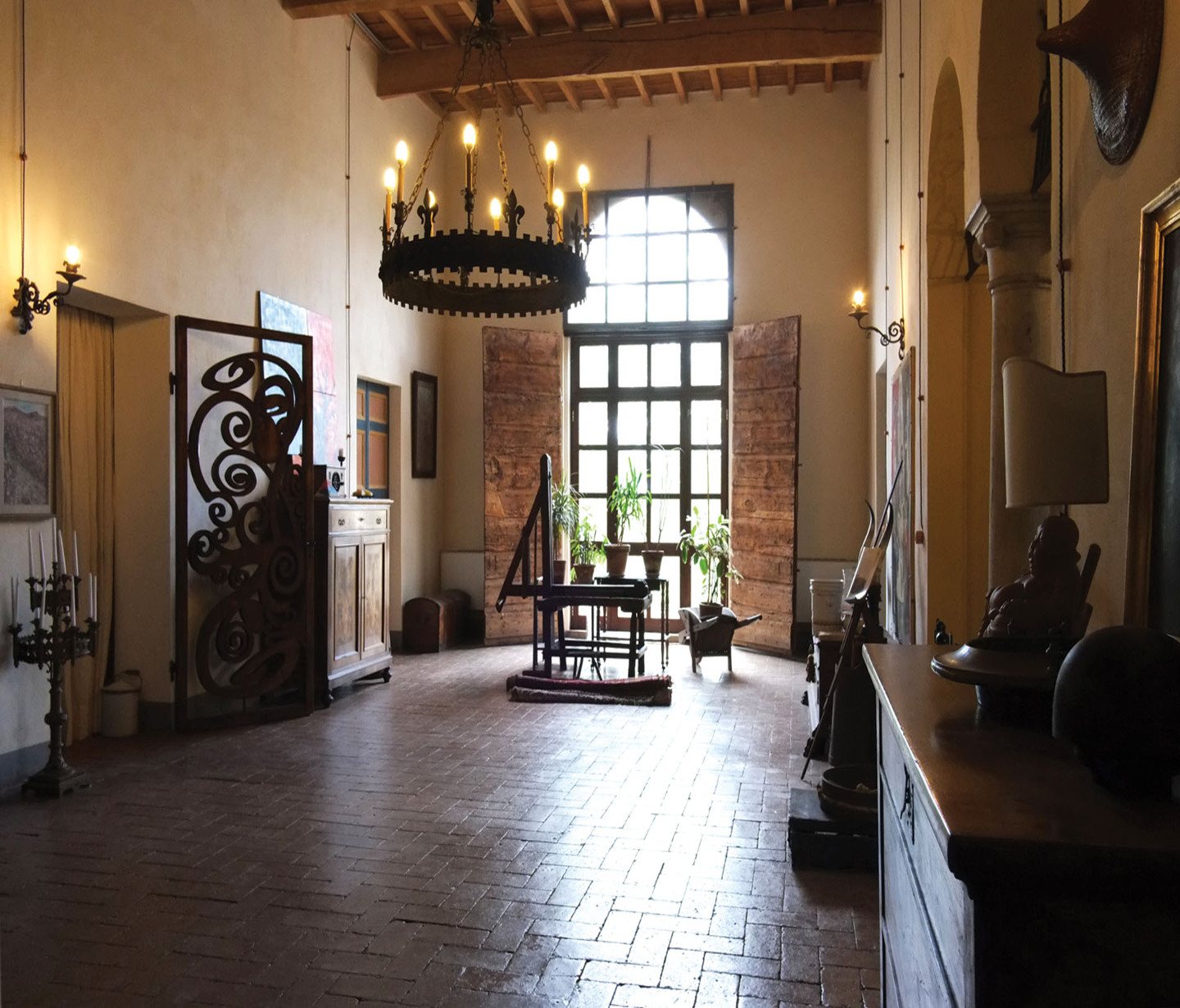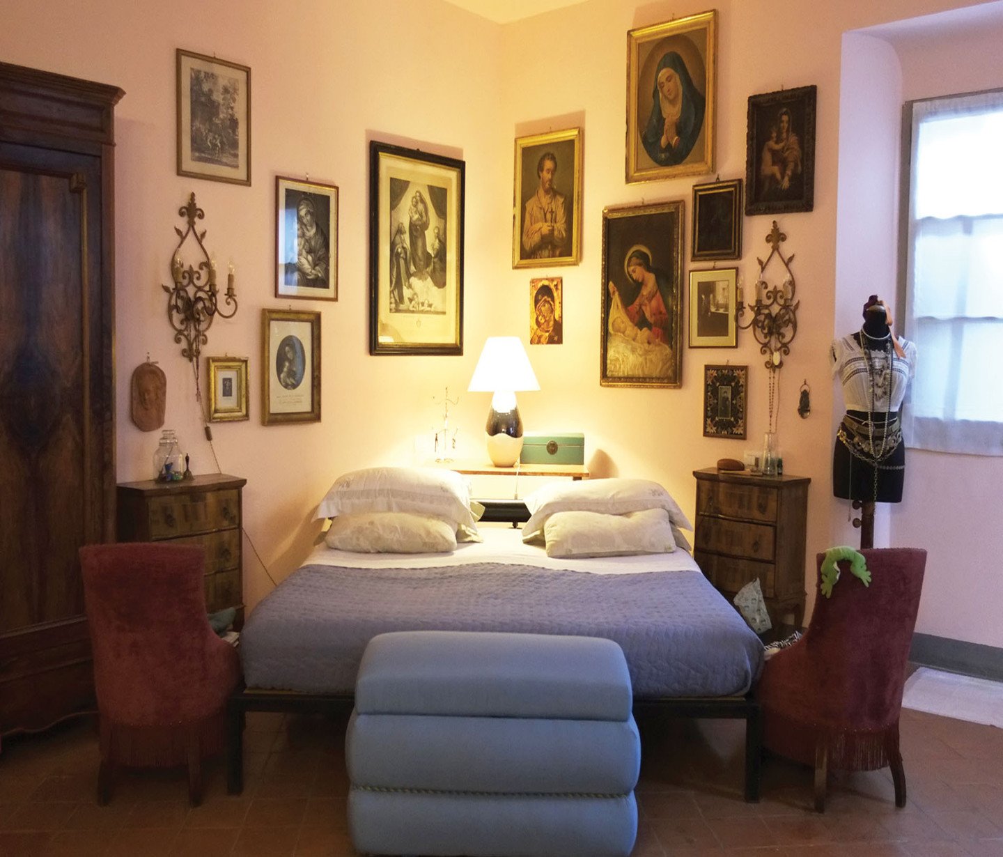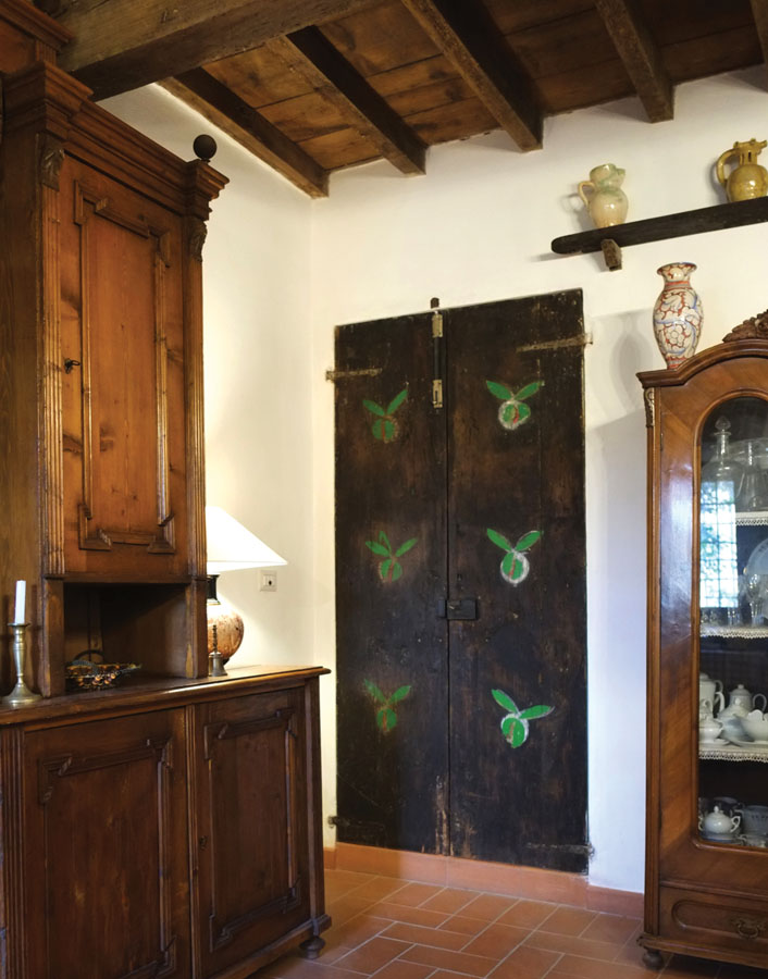 Il piano terra della villa e alcune camere di quello nobile sono stati destinati dalla marchesa Giordani al Bed & Breakfast di charme “La Bonarella”, aperto da aprile ad ottobre. Agli ospiti si promette il fascino della «magia del luogo», i vasti ambienti luminosi, in virtù di quel “sapore” di antico costruito su un’immagine evolutasi nei secoli, con pavimentazioni in cotto e mattoni, soffitti a grandi travi opportunamente distanziate, travetti e assito in legno. Sono spazi che affascinano il viaggiatore, a partire dallo scalone esterno e dal grande portale al piano nobile, fino alla camera da letto con il baldacchino. Non di meno collabora a questa atmosfera particolare anche il piacevole privilegio di consumare il rito della colazione in un’ampia sala, ornata da un tavolo romagnolo e da un grande mobile da sagrestia proveniente da una chiesa ungherese e acquisito da un antiquario ravennate. Alla Sala della colazione si accede da due porte, omaggiate da un intervento pittorico di Mattia Moreni, russiano d’adozione, ma legato da vincoli di parentela ai due proprietari come zio acquisito. Avendo abitato alla “Bonarella” nella seconda metà del Novecento, l’artista pavese lascia in eredità alla villa alcuni interventi, iniziando dalla decorazione pittorica delle due porte della sala fino a quella di altre due poltroncine in legno poste davanti al camino della Sala del Passatempo, sempre al piano terra. Salendo al piano nobile il nostro viaggiatore, sia egli italiano, d’oltralpe o provenga da territori d’oltremare, si imbatte nell’evento spaziale più significativo della villa: il vasto salone passante, al cui centro sbarca la scala principale segnalata dalla snella colonna affiancata da una vecchia bilancia brunita. Dalla parte opposta, ecco qualcosa di figurativo del tutto speciale: i due cancelli che si aprono su una camera da letto e sul disimpegno della scala di servizio sono intagliati in un legno disegnato da una flessuosa decorazione floreale, morbidamente memore di un’inaspettata stagione Liberty. In una voluta di quello di destra si intravede la firma «Mattia», che nuovamente segnala il suo legame a lungo coltivato con gli altri membri della famiglia. Nel piano attico gli ambienti assumono una dimensione più intima, legata alla privacy di Rita, ma sempre pronti ad ospitare qualcosa di sorprendente, vuoi una coppia di colonne in legno scanalato e dorato ad inquadrare una porta o, come accade in un angolo del vasto soggiorno living, il potente irrompere di una grande tela di Moreni.