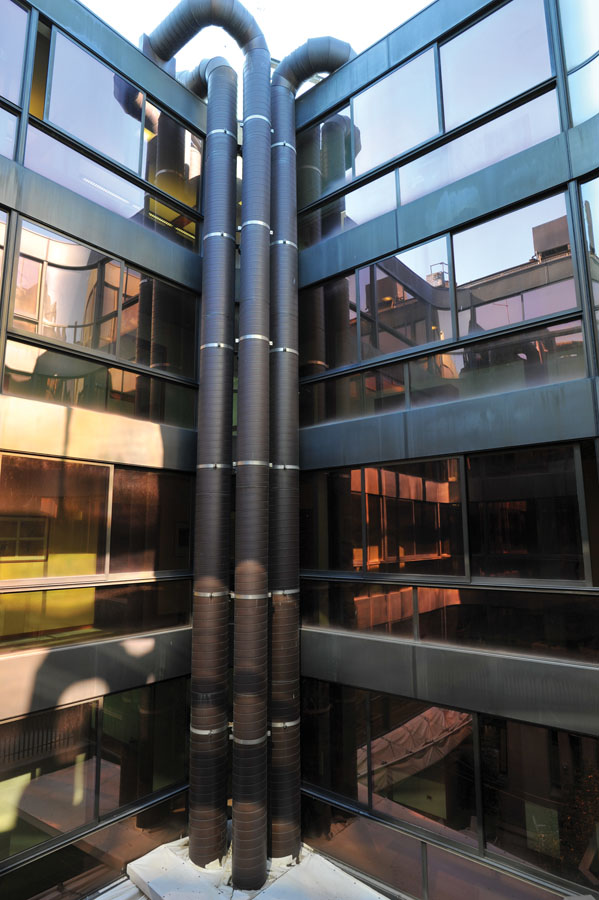 Il palazzo di vetro diventa la sede “dell’impero Ferruzzi” con un ingresso che scavalca, come un ponte levatoio, le rovine dell’antica chiesa di Santa Giustina in Capite Porticus.