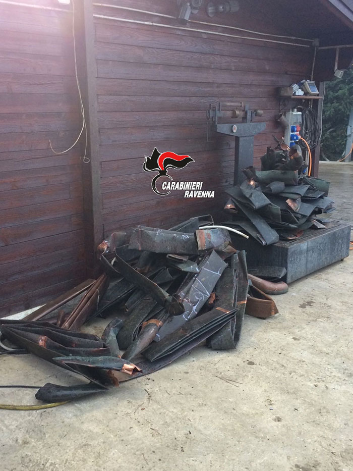 Poco prima di mezzanotte i militari impegnati nei pattugliamenti notturni contro i furti in abitazione hanno percepito rumori insoliti a ridosso della pineta di Marina Romea e, dopo essersi nascosti, hanno osservato il viavai di tre persone impegnate a caricare in auto materiale ferroso. Senza farsi notare, i carabinieri hanno aspettato che il carico fosse completato e si sono messi all’inseguimento dell’automobile fino a una ditta di raccolta di materiale ferroso e di riciclo in una località del forese. Qui hanno potuto osservare il custode aiutare i presunti ladri a scaricare il mezzo e ad accantonare tutto il materiale in un’area nascosta del deposito.