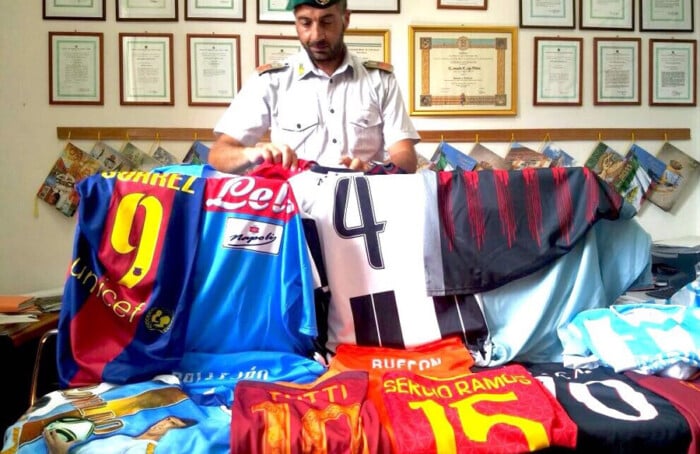 Una bancarella al mercato ambulante di Ravenna con oltre duecento magliette di squadre di calcio e merchandising di bevande, un venditore abusivo in spiaggia a Cervia con prodotti di pelletteria e una scarpa Nike come campione per le vendite successive: tutto falso e tutto sequestrato. È il bilancio di due interventi svolti nel weekend appena concluso, 10-11 giugno, dalla guardia di finanza in provincia di Ravenna.