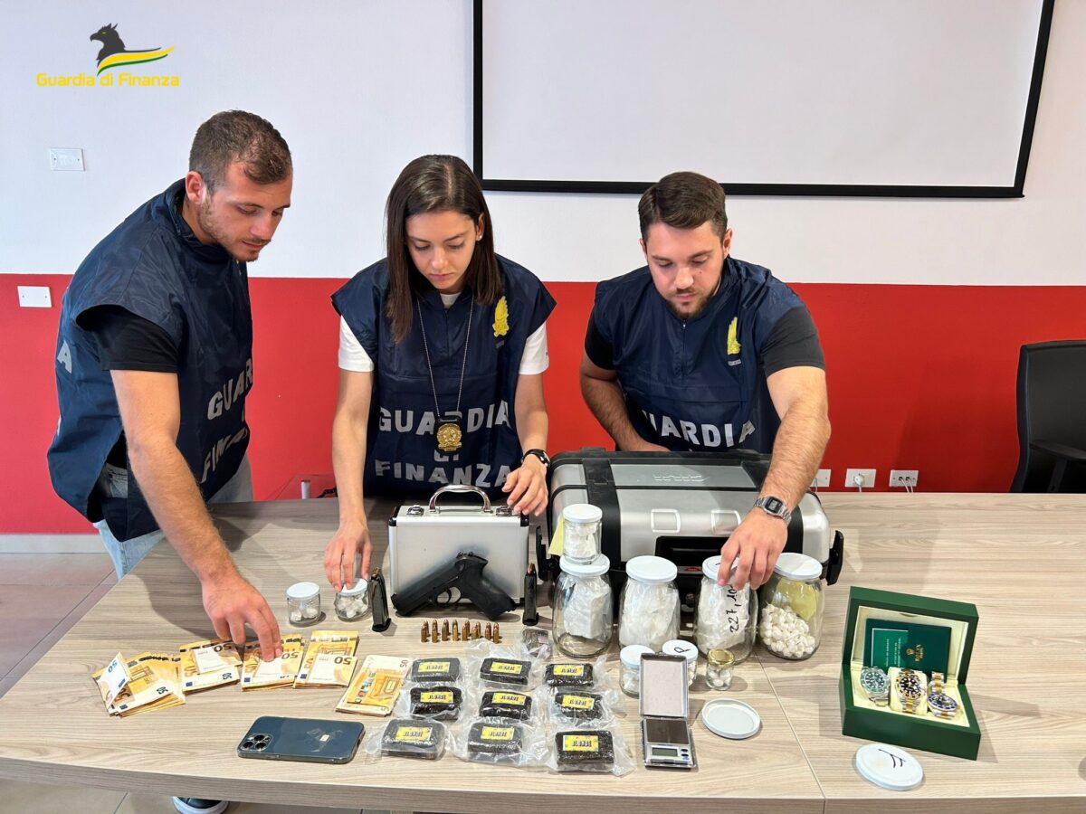 L’operazione condotta dal Nucleo di polizia economico-finanziaria, con l’ausilio dell’unità cinofila che ha rintracciato la droga gettata dal finestrino, si è conclusa con il sequestro anche di tre orologi di lusso e cinquemila euro in contanti, tutto materiale ritenuto provento dell’attività di traffico di droga.