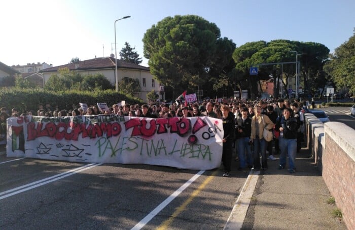 Migliaia di persone a Ravenna stanno partecipando stamani, 3 ottobre, al corteo dello sciopero generale per Gaza e la Sumud Flotilla organizzato dai sindacati Cgil e Usb. Il ritrovo è stato in piazza del Popolo con la partenza alle 9.30 verso la darsena di città dove sono in programma interventi dei rappresentanti delle sigle sindacali e delle associazioni che hanno aderito alla giornata di mobilitazione. Lungo il percorso cori e striscioni a sostegno della Palestina.