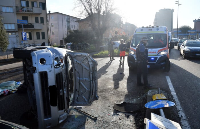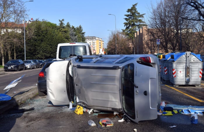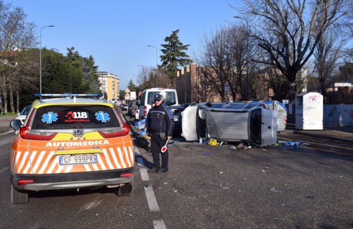 Incidente “spettacolare” ma fortunatamente senza gravi conseguenze nella mattinata dell’ultimo giorno dell’anno a Ravenna, in via Rubicone. Una donna over 80, alla guida di una Suzuki, ha infatti perso il controllo della propria utilitaria all’altezza della piccola rotonda all’incrocio con via Panfilia, andando a tamponare una Mercedes e finendo poi cappottata contro un’Audi parcheggiata in zona (con nessuno a bordo ma a sua volta danneggiata).