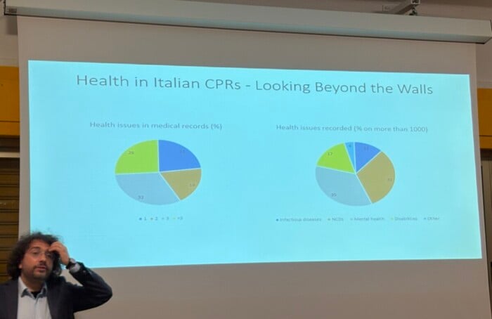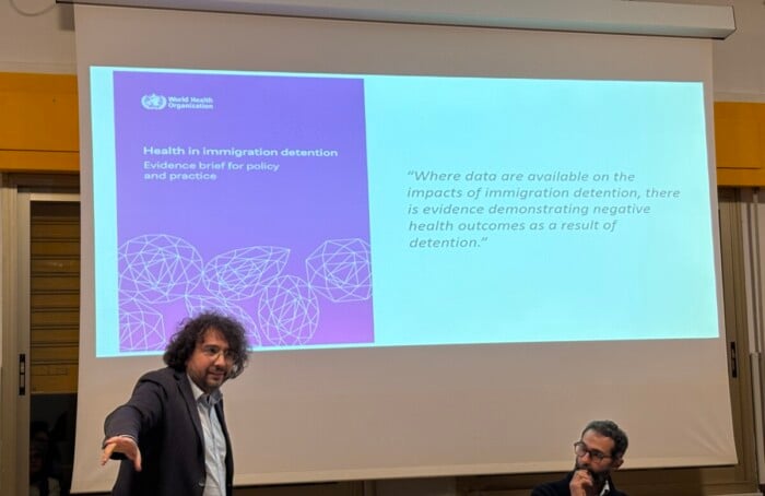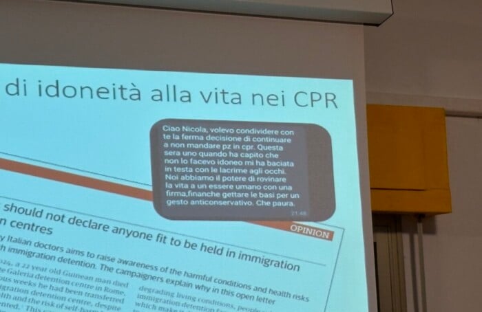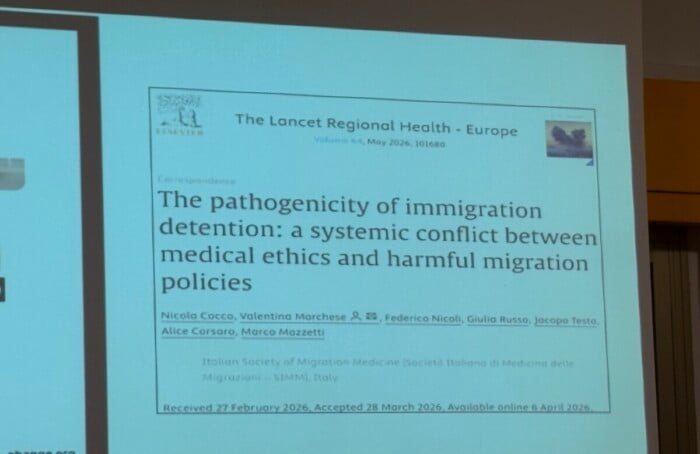 L’infettivologo ha cercato di mostrare anche paradossi, contraddizioni e lacune della detenzione amministrativa. «Nell’estate 2025 al Cpr di Gorizia un dermatologo ha diagnosticato un caso di scabbia e la persona è stata rilasciata. Altre persone hanno cominciato a manifestare sintomi simili. Ma la dirigenza della struttura, pur di non certificare un focolaio di scabbia che avrebbe intaccato la funzionalità del Cpr, ha preferito rilasciare i contatti del primo caso con delle diagnosi psichiatriche, senza cenni alla scabbia. Quindi uscivano persone che si grattavano in maniera ossessiva, ma ufficialmente avevano disturbi mentali».