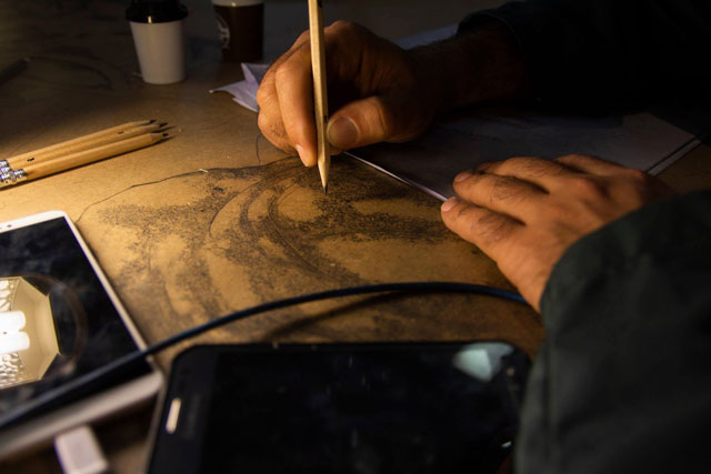 «Esatto. Per quanto il taglio figurativo non sia iperrealista, mi piacerebbe che la mia opera trasmettesse un che di umano, anche solo per il modo in cui è stata realizzata. Io mi stendo letteralmente sul foglio di carta, ci entro dentro, e spesso muovendomi creo delle sbavature della grafite. Questo dà un’idea di approccio che è al di fuori della misura d’uomo. Mi piacerebbe che tutti quanti potessero sentirsi veri e propri protagonisti in quest’opera».