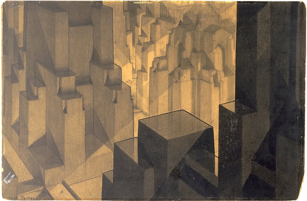 A seguire quattro disegni di Hugh Ferriss tratti dal volume The Metropolis of Tomorrow, Ives Washburn Publisher, New York 1929.