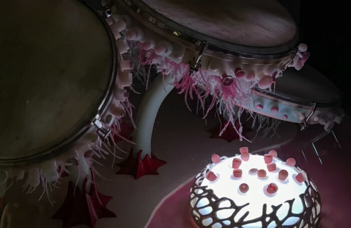 Il soft-robot è stato recentemente esposto all’Expo di Osaka, in Giappone, respirando ininterrottamente per mesi l’aria di Ravenna all’interno del padiglione dedicato all’Italia. È proprio in vista dell’esposizione universale che PneumOs si è arricchito di un nuovo indicatore luminoso, che rischiara la sacca in pelle con un bagliore freddo e chiaro (aria buona) o che si spegne in un riflesso opaco e flebile (aria pessima).