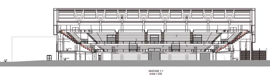 Alcune caratteristiche strutturali dell’edificio le avevamo già rese note nei mesi scorsi. Superficie coperta di 8.600 mq (di cui tremila utilizzabili in caso di esposizioni), potrà contenere seimila persone a sedere per gare di basket e volley (cinquemila in caso di concerti e spettacoli), sarà dotato di un impianto fotovoltaico con una produzione media annua di 173mila kwh, avrà un campo geotermico per la produzione di acqua calda sanitaria, avrà un impianto di aerazione capace di un ricambio di 120mila mc di aria all’ora. L’ingresso principale sarà dal lato della piazza centrale, da via Canale Molinetto invece l’accesso per gli atleti.