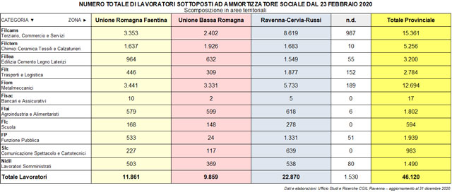 Venti milioni di ore di cassa integrazione, tasso di occupazione sceso di tre punti percentuali, aumento delle persone che non lavorano e non cercano occupazione da 62mila a 66mila. I numeri elaborati dall’ufficio studi e ricerche della Cgil di Ravenna possono aiutare a comprendere l’impatto del Covid sul mondo del lavoro nel territorio provinciale.