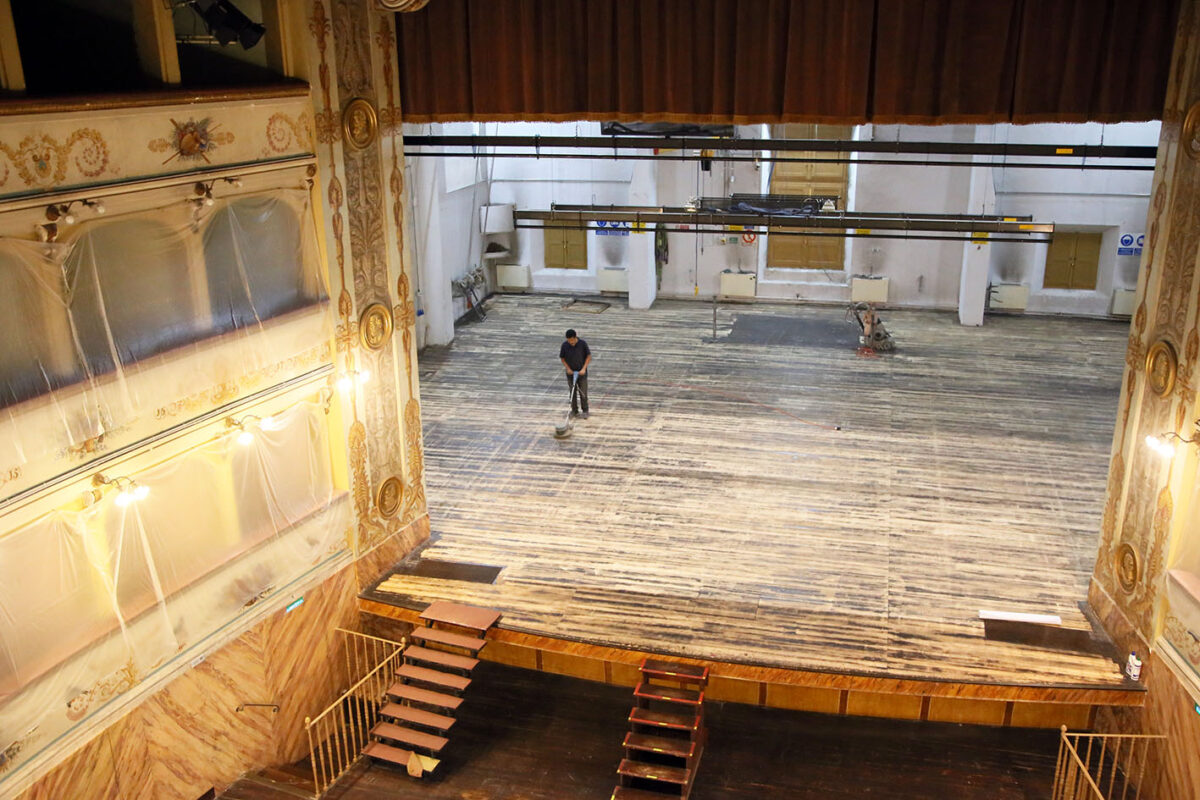 Prosegue l’intervento di riqualificazione che coinvolge arredi, allestimenti e impianti del teatro Goldoni di Bagnacavallo. In questi giorni sono in corso la carteggiatura e il necessario trattamento della pavimentazione in legno del palco e della platea. Saranno poi sostituite nelle prossime settimane le 112 sedute della platea, che riprenderanno i colori e le caratteristiche di quelle preesistenti.
