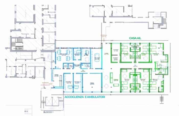 Il progetto per casa Ail e per l’Area Accoglienza è iniziato a gennaio 2026: questo Centro ospiterà, nei locali dell’ex reparto di Oculistica, appositamente ristrutturati, pazienti fuori sede (e i loro familiari) che dopo il trapianto necessitano di ulteriori terapie di supporto e pazienti provenienti da tutta Italia per terapie sperimentali non disponibili nel centro di provenienza.