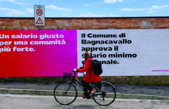 I manifesti del Comune di Bagnacavallo che pubblicizzano l'iniziativa del salario minimo