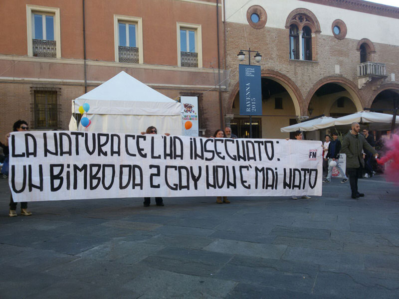 «Domenica Ravenna ha tremato perché chi ha sempre pensato di vincere si è trovato spiazzato da un manipolo di soldati politici che gli hanno sbattuto in faccia il pensiero di tanta gente, di tutti quei italiani che ancora difendono la propria società e la propria Patria». C’è una certa enfasi nelle parole di Desideria Raggi, responsabile provinciale di Forza Nuova, che replica alle accuse degli organizzatori della manifestazione per i diritti Lgbt («Abbiamo solo mostrato uno striscione e liberato la piazza in poco più di 10 minuti…», sottolinea Raggi) e a quelle del sindaco Fabrizio Matteucci, che ha chiesto al prefetto di verificare eventuali atti illeciti legati alla presenza del movimento di estrema destra.