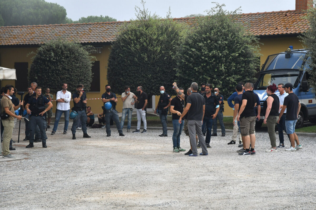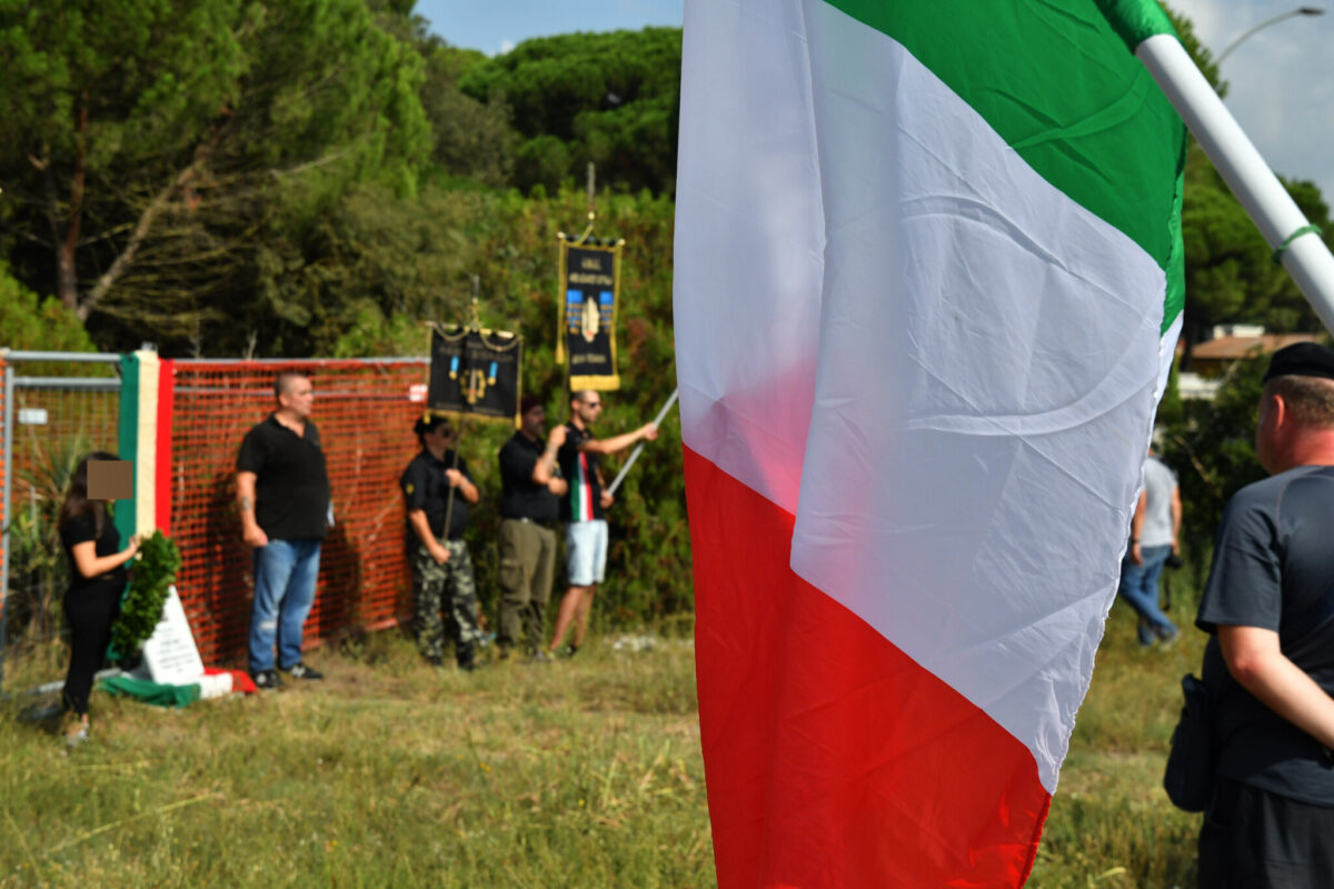 A controllare che la situazione non degenerasse (era presente come tutti gli anni anche un presidio antifascista) le forze dell’ordine.