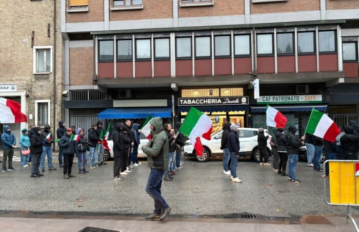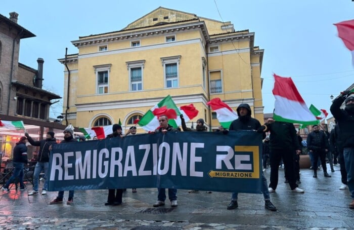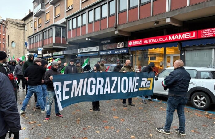 Circa 120-130 i manifestanti (le donne si contano sulle dita di una mano) che sfilano dietro uno striscione con la scritta Remigrazione. Le uniche bandiere sono quelle del tricolore italiano. Appena partiti, hanno intonato l’inno di Mameli e lungo la camminata fino a piazza Einaudi cori come “L’Italia agli italiani, l’Europa agli Europei” e “Ravenna è nostra e ci appartiene”.