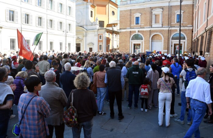 Nel frattempo, in piazza Caduti si è svolto il presidio della sinistra radicale, guidata da Potere al Popolo, che ha manifestato contro le guerre e per «mandare a casa» il Governo Meloni.