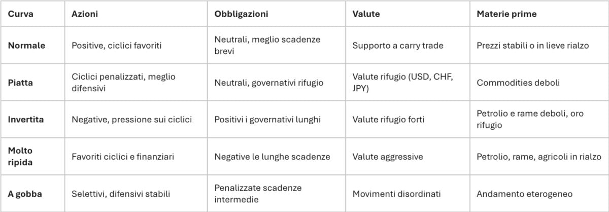 La yield curve è il grafico che mette in relazione i rendimenti dei titoli obbligazionari con le loro scadenze. È, di fatto, una radiografia delle aspettative degli investitori: crescita economica, inflazione, politica monetaria.