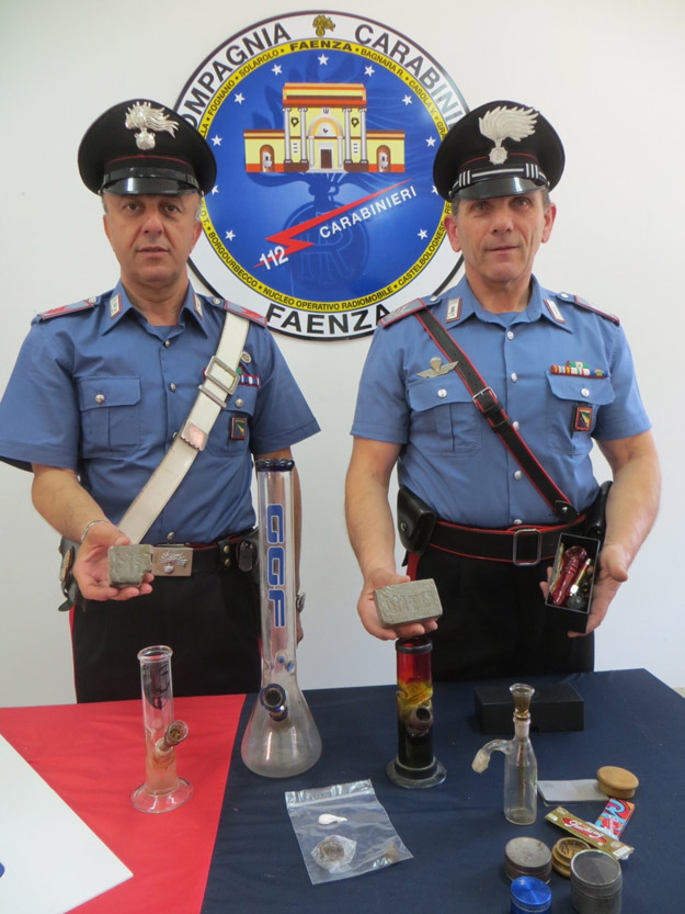 Nelle mutande del 17enne 8 grammi, nell’abitazione dell’amico 19enne invece 150 grammi suddivisi in due panetti con una scritta incisa sul fianco che completava quella sul pezzo del più giovane. I carabinieri della compagnia di Faenza hanno denunciato il minore per detenzione illegale di stupefacenti e arrestato il maggiorenne poi condannato a un anno e tre mesi (pena sospesa) e duemila euro di multa. È il resoconto di un’operazione antidroga che ha riguardato un gruppo di giovani di Granarolo Faentino e conclusa l’1 giugno. Da qualche giorno i militari della compagnia di Faenza avevano intensificato i servizi antidroga nella frazione di Granarolo, sulla scorta di alcune segnalazioni di cittadini su movimenti nella zona vicino al campo sportivo dove solitamente si intrattengono molti giovani, soprattutto minorenni. L’operazione è però partita a Faenza in via Laghi quando una pattuglia ha notato tre giovani già visti a Granarolo. Come accennato, la circostanza che ha collegato i due giovani è stata l’incisione sui pezzi di hashish. Sul panetto c’era la scritta “Mito”. Uno degli innumerevoli marchi comunemente usati nei traffici di droga perché consente di riconoscere le partite di droga (recentemente sono state sequestrate nel milanese partite di hashish con la scritta “Expo”).
