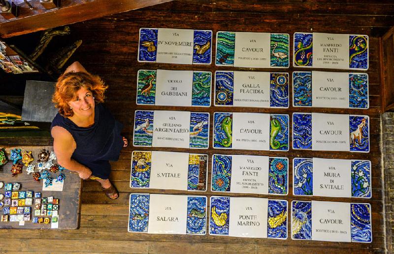 I 15 pannelli musivi sono stati finanziati dal Comune con il contributo della Fondazione del Monte di Bologna e Ravenna e saranno collocati in: via Cavour (5 targhe); via Mura S.Vitale, via Manfredo Fanti (2 targhe), Via Argentario, Via S.Vitale, via Salara, Vicolo Gabbiani, via Ponte Marino, via IV novembre, via Galla Placidia.