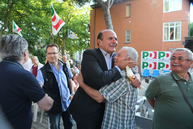 Pacche sulle spalle, abbracci e sorrisi: clima quasi da ritrovo in famiglia per la visita di Pierluigi Bersani a Marina di Ravenna ieri, 29 giugno, all’inaugurazione della rinnovata sede del circolo Pd in via Zara. L’ex segretario nazionale del partito ha trovato ad accoglierlo molti sostenitori e buona parte della dirigenza locale ma anche un altro volto della vecchia guardia come Vasco Errani, da poco reduce dall’annullamento della condanna in appello (con rinvio per un processo bis): taglio del nastro, cena con i simpatizzanti del partito e poi l’intervista pubblica con un giornalista dell’Huffington Post.