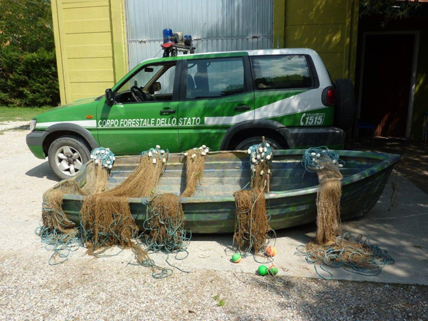 A bordo del furgone il personale della Forestale dei comandi di Ravenna, Bagnacavallo e Casalborsetti ha trovato anche 800 metri di reti da pesca. Il controllo è scattato quando ci si è accorti che il mezzo si stava allontanando dal punto in cui aveva appena attraccato una piccola imbarcazione che aveva attraversato le acque della valle.