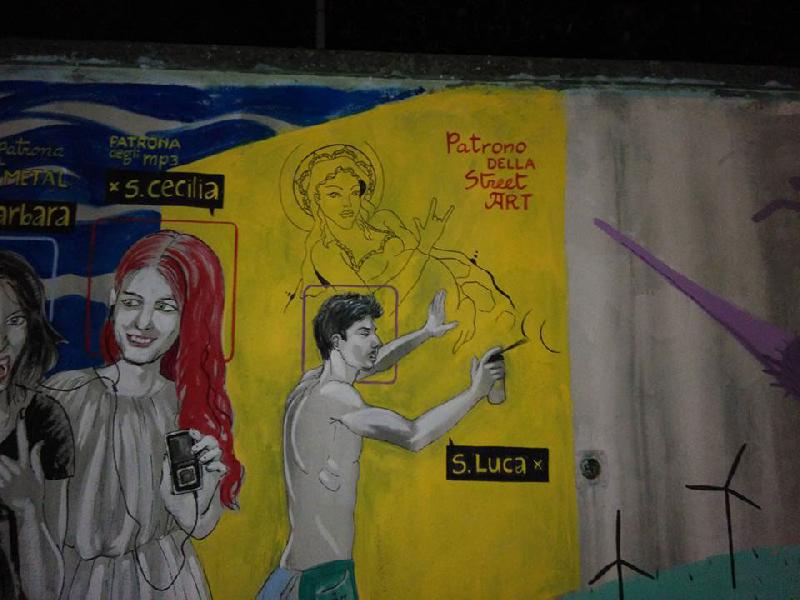 «Murales blasfemi sul muro dell’ex ippodromo». L’accusa arriva da Gianluca Benzoni di Lista per Ravenna (e dell’Udc) che se la prende con il festival di street art di Ravenna, Subsidenze, che ha portato nei giorni scorsi artisti di caratura internazionale a dipingere alcuni muri di Ravenna. Il riferimento è però al lungo murales collettivo di via Marani, realizzato da 16 artisti emiliano-romagnoli scelti attraverso un bando comunale. Un festival che riceve soldi pubblici, con Benzoni quindi che se la prende anche con il Comune: «Assurdo che un ente pubblico foraggi vignette che rasentano il blasfemismo già utilizzato da Charlie Hebdo nei confronti della religione musulmana. Tengo a precisare che la stessa indignazione e sdegno ci sarebbe stata anche nei confronti di grafia contro il mondo musulmano, buddista o altro. Troviamo – continua il politico di area cattolica – che la religione non debba essere strumentalizzata o provocata con simboli al limite dell’offesa, come nel caso di questi murales… Troviamo di cattivo gusto le corna sopra un Gesù disegnato con le infradito, una signora incita intenta a fare le corna. Troviamo anche di cattivo gusto la vicinanza di simboli che richiamano gli illuminati vicino alla figura S. Patrizio, ciò con il precipuo intento di alludere ad una commistione fra chiesa e poteri forti».