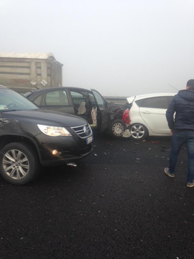 Ha tamponato una vettura incolonnata in corsia di marcia ed è finito di traverso sulla corsia di sorpasso dove è stato colpito sulla fiancata sinistra da un camion sopraggiunto ed è rimbalzato contro un autocarro fermo davanti, una carambola mortale: avrebbe compiuto 20 anni domani, G. C., invece è morto verso le 9 di oggi, 2 dicembre, a Ravenna al volante della sua Toyota Yaris coinvolta nella serie di tamponamenti sulla A14 Dir tra lo svincolo di Fornace Zarattini e l’innesto con la statale 16 Adriatica dove fino alla tarda mattinata è rimasta una fitta nebbia. Il tratto di superstrada è rimasto chiuso al traffico fino alle 15 per consentire i soccorsi e la rimozione delle decine di veicoli coinvolti in circa sei o sette diversi tamponamenti. Secondo i rilievi della polizia stradale la visibilità al momento dell’incidente non era superiore a 50-60 metri.