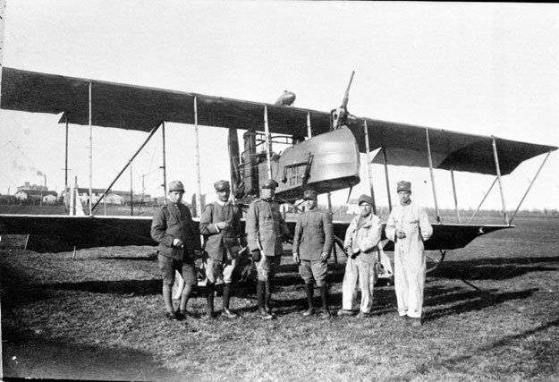 È Mingozzi che ricorda sommariamente le vicende di quei tempi: «Il bombardamento aereo del 12 febbraio 1916, il primo che colpì Ravenna durante la grande guerra e distrusse la facciata della basilica di Sant’Apollinnare Nuovo, mise a nudo la vulnerabilità di Ravenna, priva di ogni sistema di difesa. Le pressanti richieste del sindaco Fortunato Buzzi e di Luigi Rava indussero il ministero della Guerra e quello della Marina ad avviare un programma di nuove installazioni. In giugno fu costituita la sezione aeroplani difesa che con aerei Farman iniziò ad operare dalla piazza d’Armi. Contemporaneamente si iniziò a costruire un campo d’aviazione in località Cascina Spreti. La sezione aeroplani fu operativa per tutto il conflitto».