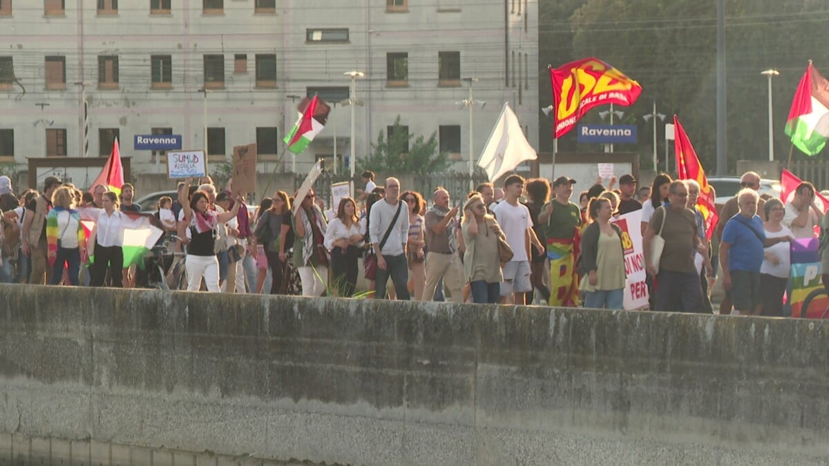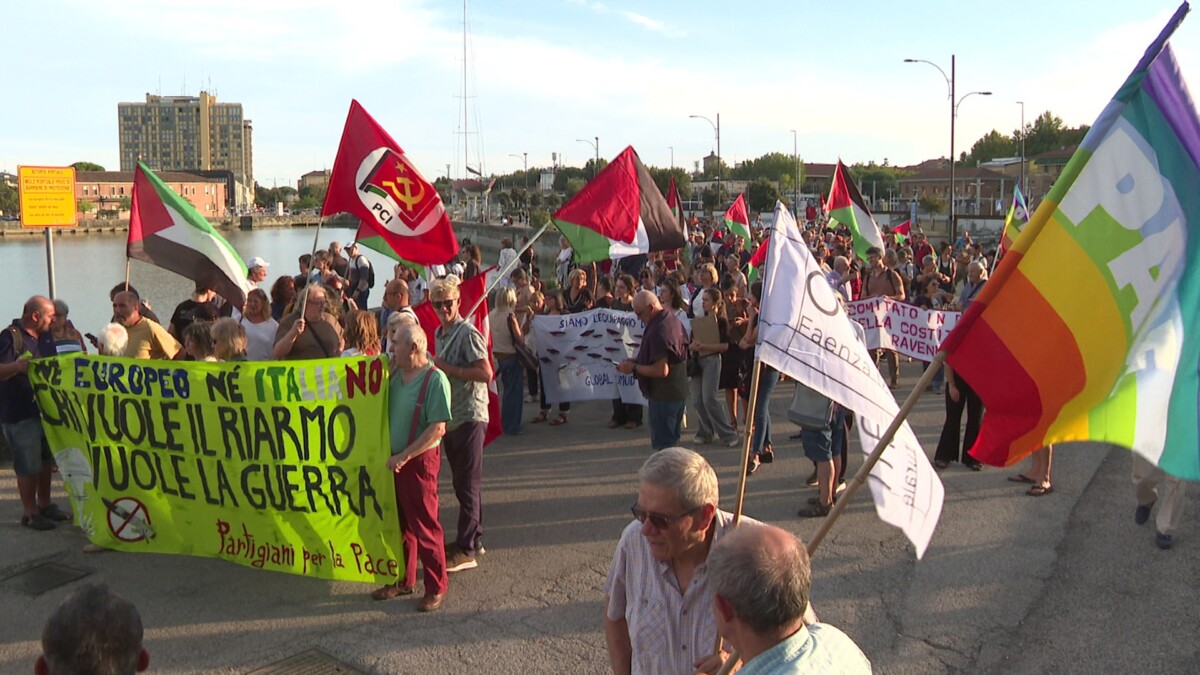 Il corteo è variopinto, gente di tutte le età, alcuni studenti di Osa (Opposizione Studentesca d’Alternativa) guidano i cori, mentre si percorre il breve tratto dalla testata della darsena fino ai cancelli della sede dell’Autorità portuale. Tra i presenti anche l’assessora alla Pace del Comune di Ravenna, Hiba Alif.