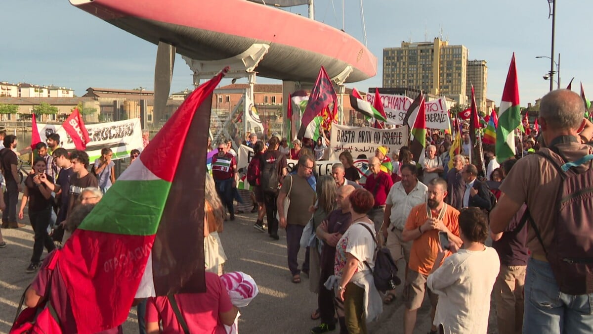 Diverse centinaia di persone (oltre mille secondo gli organizzatori, tra cui in particolare i gruppi Bds Italia, “Movimento italiano per il Boicottaggio, Disinvestimento e Sanzioni contro l’apartheid israeliana”) hanno preso parte alla manifestazione che si è svolta (martedì 16 settembre) in darsena contro il transito di armi e componenti belliche dirette in Israele dal porto di Ravenna.