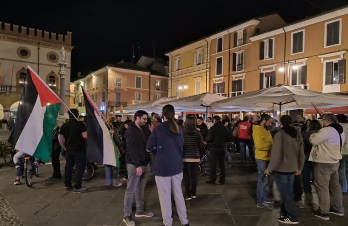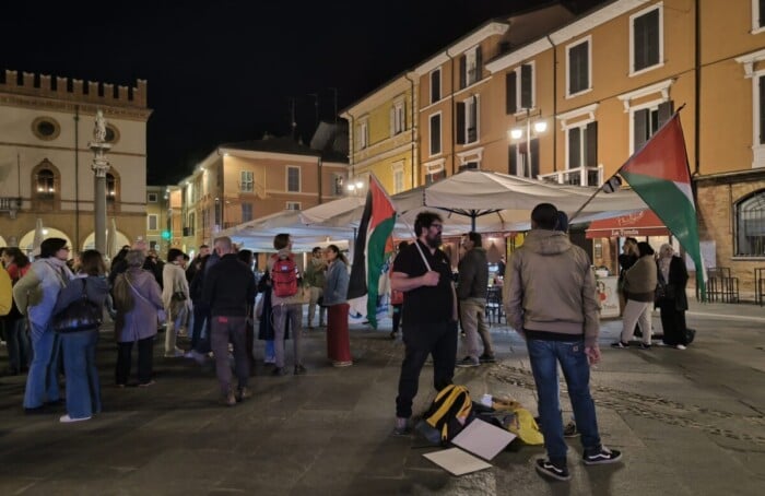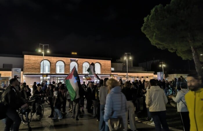 È scattata in tutta Italia la mobilitazione in solidarietà alla Global Sumud Flotilla, dopo l’abbordaggio da parte di Israele delle barche della missione umanitaria. Un presidio è in corso anche in centro a Ravenna, tra la piazza e la stazione.
