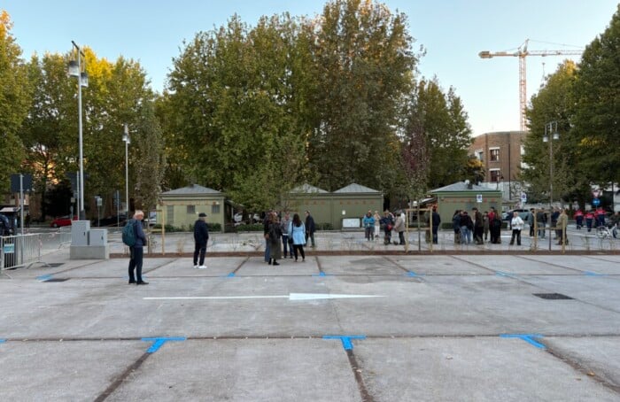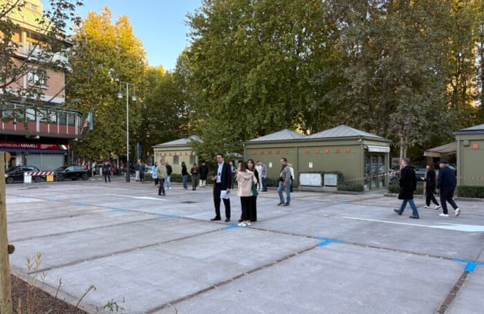 Tre mesi di cantiere hanno rimodellato l’area centrale di sosta che è stata ampliata per consentire di disegnare stalli più larghi in linea con le misure delle auto attuali. I posti con strisce blu sono 40, più due riservati ai disabili: la disponibilità è la stessa rispetto a prima del cantiere e non è calata come invece era stato riportato in altri articoli su queste pagine facendo riferimento al dato sul sito del Comune che citava 62 (e ora è stato modificato a 42). Sul perimetro esterno della piazza erano presenti cinque posti con righe gialle (2 per carico e scarico e 3 riservati all’albergo Nh) che sono stati convertiti in posti blu.