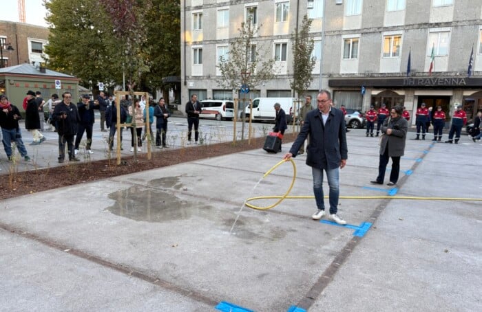 La caratteristica principale dell’intervento è l’approccio green: fondo in cemento drenante che funziona come una sorta di spugna per facilitare lo smaltimento delle acque verso la falda sottostante con minore aggravio sulla rete fognaria e l’inserimento di spazi verdi contro le isole di calore. Sono stati piantati otto alberi di medie dimensioni, la misura massima possibile perché la pianta regga al trapianto: aceri rossi, aceri campestri e un ginkobiloba a impianto colonnare. Alla base degli arbusti: salici di due tipi che daranno colorazioni diverse agli inserti naturali. Le essenze, tutte caduche, sono state scelte per richiamare i colori della città. L’intervento rientra in una serie di opere simili nel comune per un costo complessivo di un milione di euro.