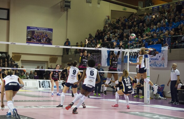 La Conad lotta con cuore e orgoglio, perde per strada anche Aluigi, ma lo stesso gioca alla pari con la forte Omag nel derby di San Giovanni in Marignano, inchinandosi solo al tiebreak al termine di una vera e propria battaglia. Il punto guadagnato in terra riminese, aggiunto alla sconfitta di Sassuolo a Torino, mantiene ancora viva la speranza delle ravennati di qualificarsi alla Poule Promozione. Con cinque lunghezze di ritardo rispetto alle emiliane, con due gare ancora da disputare, le biancorosse hanno ancora la matematica dalla loro parte e con essa anche il calendario, considerato che la Canovi deve sfidare la prima e la terza della classe (Perugia e Trento), mentre Bacchi e compagne sulla loro strada hanno la terzultima della classe Cutrofiano (appuntamento al PalaCosta il 20 gennaio dopo il turno di riposo del giorno dell’Epifania) e il fanalino Marsala.