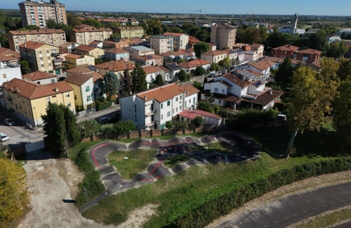 Inoltre, nella zona a sud dell’ingresso di via Timavo, su una superficie di circa mille metri quadri, è stato realizzato un percorso di pump track (circuito di dossi, curve sopraelevate e discese appositamente progettato per essere percorso senza pedalare, ma semplicemente ‘pompando’, generando cioè slancio attraverso i movimenti in su e in giù del corpo) con finitura in asfalto.