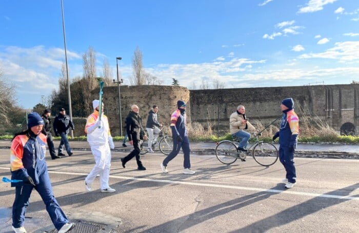 Non ci poteva essere clima più adatto per accompagnare la fiaccola delle olimpiadi invernali di Milano Cortina 2026: neve ai lati della strada e temperatura vicino allo zero hanno fatto da contorno alla staffetta dei trenta tedofori lungo le vie di Ravenna. Dopo che la fiamma aveva già fatto tappa allo stabilimento Eni Versalis (uno dei main sponor dell’evento), in Darsena un centinaio di curiosi ha applaudito la ripartenza della fiamma.